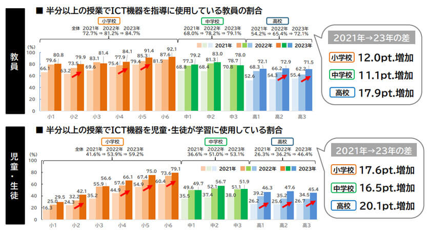 出典:ベネッセ教育総合研究所「小中高校の学習指導に関する調査2021-2023」