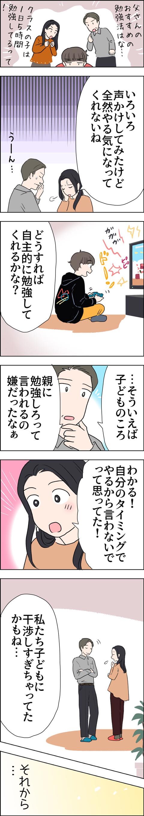 また、相談がないのに勉強のやり方に口を出すのも、やる気を損ねることになるので要注意です。成績が伸びないのは勉強の進め方に問題があるからでは? と思ったとしても、お子さまにはお子さまのやり方があり、試行錯誤しながら自分に合った勉強方法を見つけるのも大事な学びです。どうしてもアドバイスしたい場合には、「こんな方法もあるよ」と一つの例として紹介するにとどめましょう。