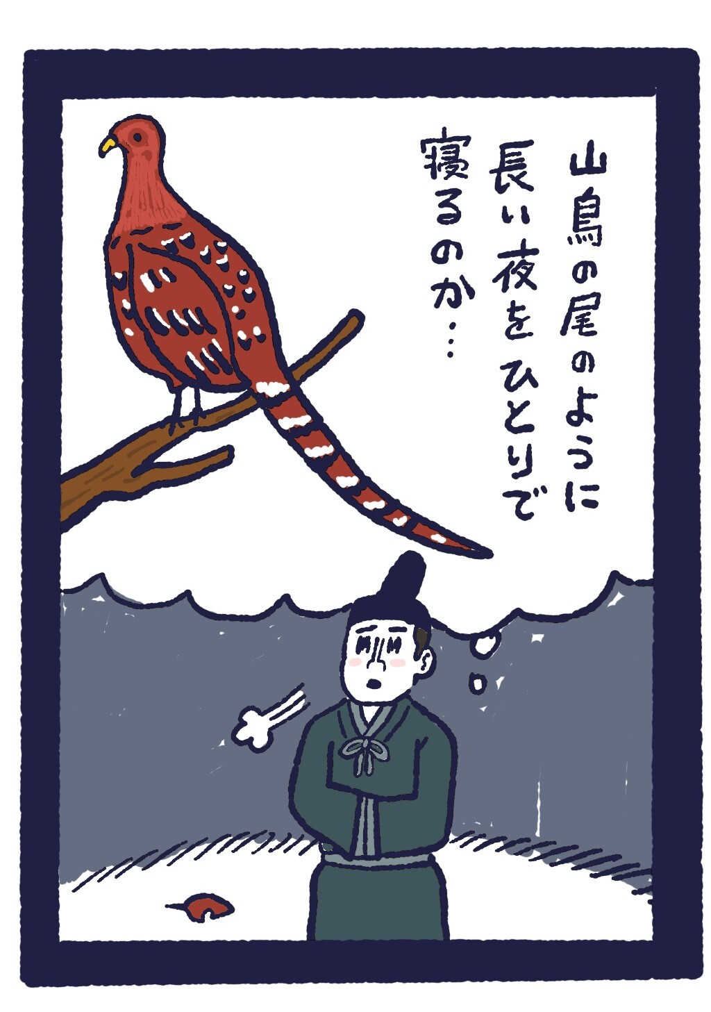 あしびきの 山どりの尾の しだり尾の ながながし夜を ひとりかも寝む (柿本人麿) -