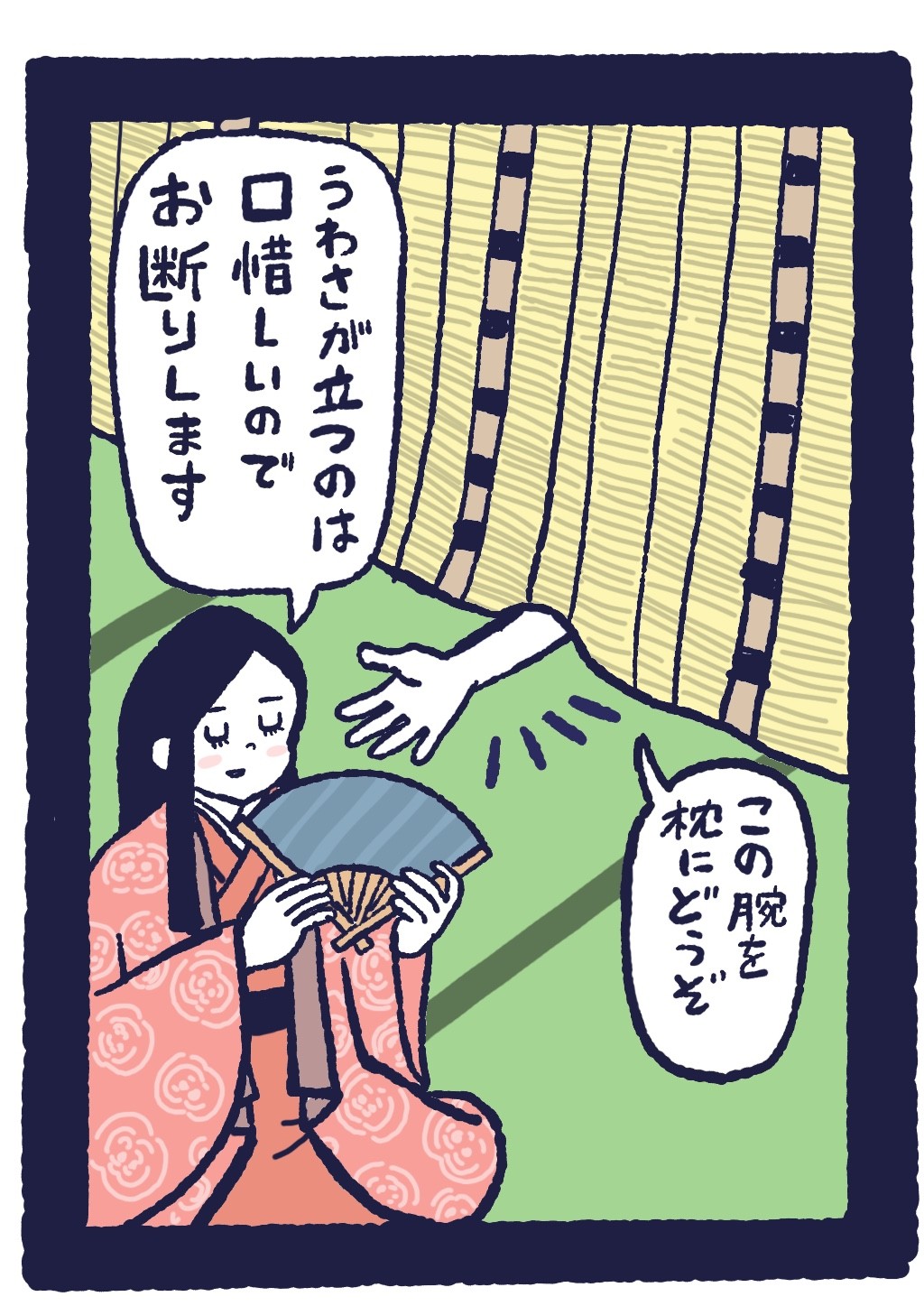 春の夜の 夢ばかりなる 手枕に かひなくたたむ 名こそをしけれ(周防内侍) -