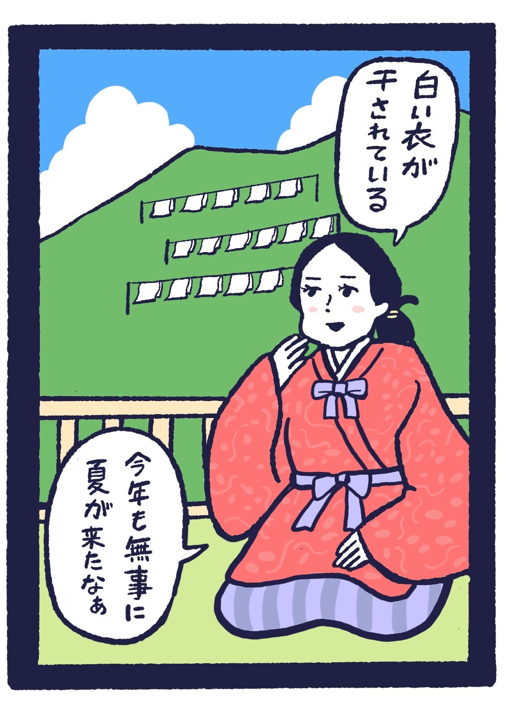春すぎて 夏来にけらし 白妙の 衣ほすてふ 天の香具山 (持統天皇) -