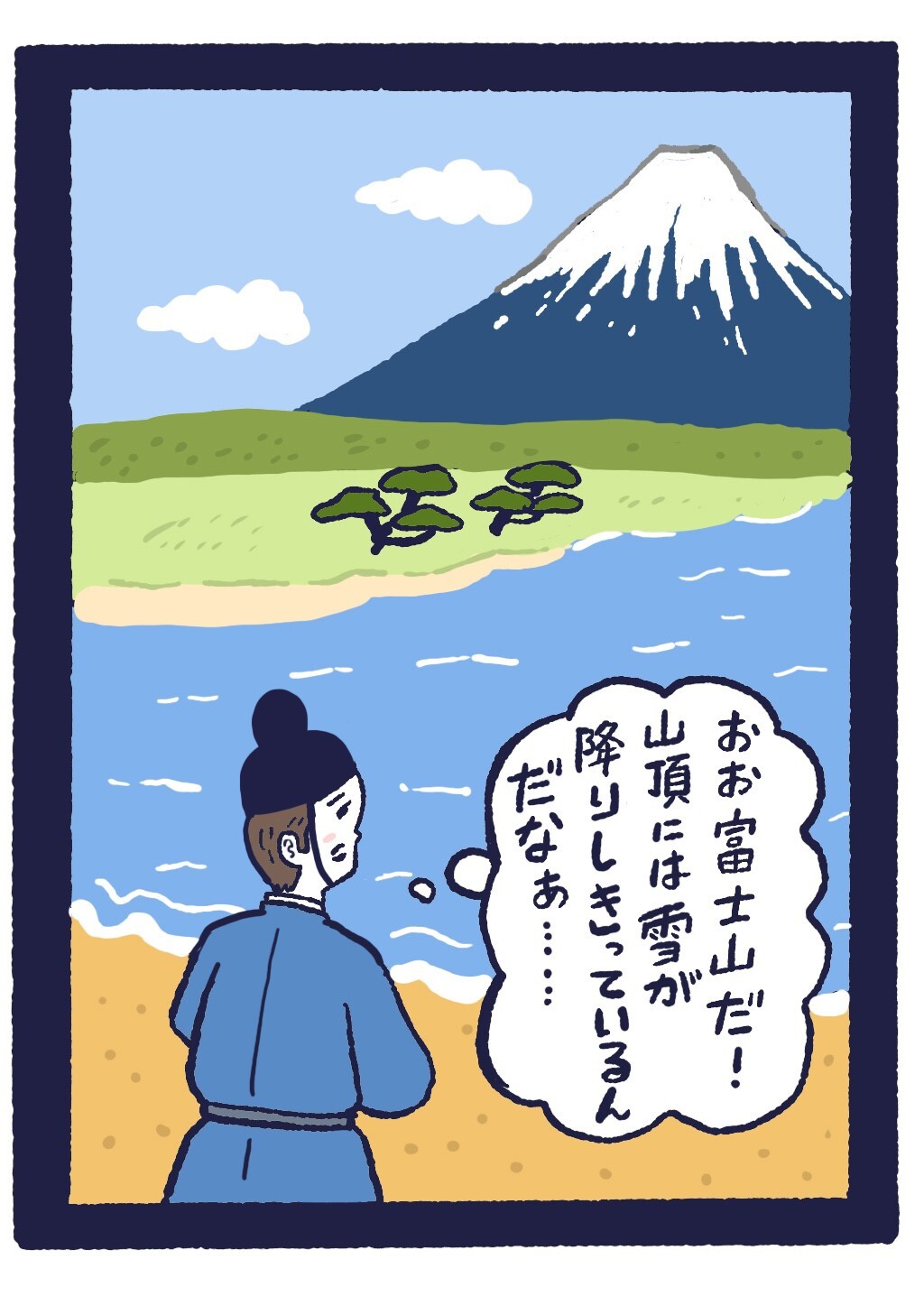 田子の浦に うち出でて見れば 白妙の 富士の高嶺に 雪は降りつつ (山辺赤人) -