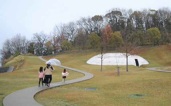 アート、建築、自然の一体を目指してつくられた豊島美術館。作品空間には柱が1本もなく、2つの開口部から入ってくる光や風、雨など、自然のありのままを受け入れます。空間内部では水が生まれ、一日をかけて「泉」が誕生します。