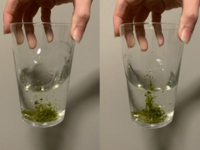 - 茶がらの量が多すぎると、うまく渦にするのが難しい。量を加減してみよう。