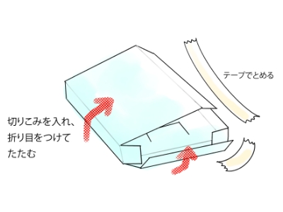 ②のカバーに入れ、すずしい場所に、はこを立てておいておく。