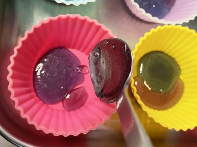 あめをシリコーンカップに流し入れる。