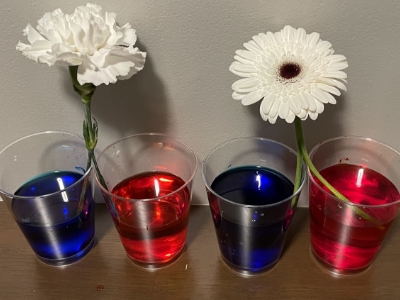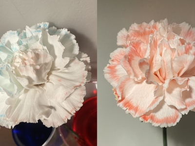 白い花を使って、花の色を変える実験をしよう。観察すると、面白い発見もあるよ。