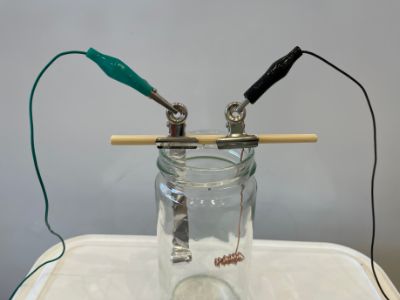 この「ボルタ電池」をお酢を使って再現してみよう。