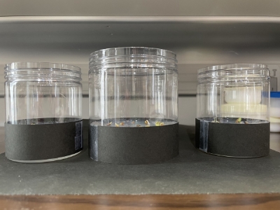 寒天がひえてかたまったら寒天の高さに合わせて黒色画用紙をまく。ようきの下にも黒色画用紙をしく。
