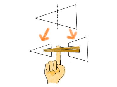 二等辺三角形の真ん中に線を引き、切り分ける。