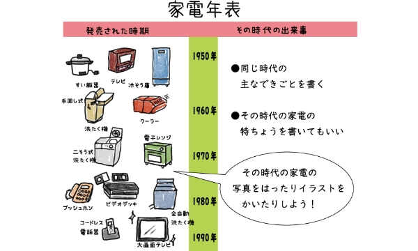 大きな紙に、発明年表を作る。製品の絵や写真をはる。