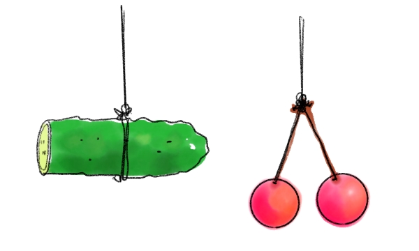 ★むすび目を少しずつ動かして水平に安定するところをさがし、ゆれが止まるまで待とう。