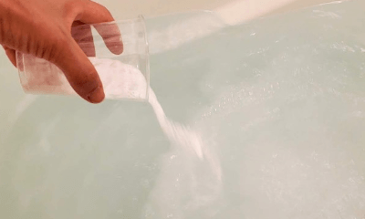 次に、重曹を入れる。入れるとすぐにアワが立ち始めるのでそっとかき混ぜ、シュワシュワのおふろを楽しもう!
