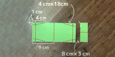 別の厚紙を細長く切り、折り目をつけて①の中央に貼り付ける。