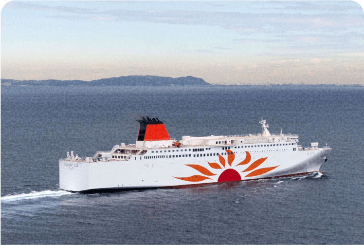 フェリーは、人やモノを運ぶ名人。人といっしょに車やトラック、トレーラーなどものせて、遠くまで運ぶことができるよ。
