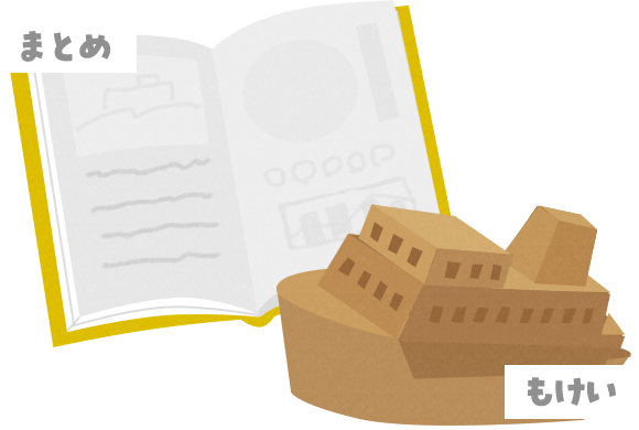 「調べる前の予想」と「調べてみたけっか」をくらべてまとめてみると、もっと学びが深まるよ。たとえば、船がかたむかないようにどんな工夫がされているか、予想とけっかをくらべてみよう。