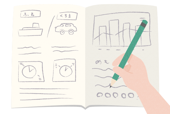 フェリーの未来について考えたことは、文章だけでなく、イラストや図などで視覚的にまとめてみよう。
