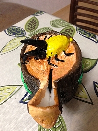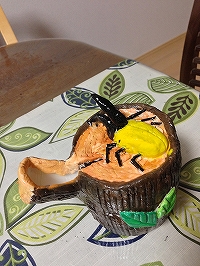 くわがたをトイレットペーパーの芯をつかって、立体感をだした。