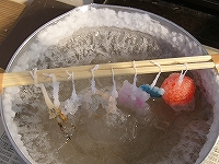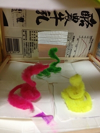 輪ゴムで割り箸と牛乳パックを固定するところが難しかったようですが、だんだんコツをつかんだようで、何とか最後まで作り終える事ができました。
