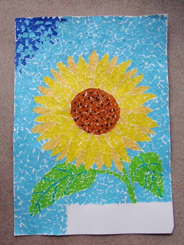 折り紙を小さくちぎって貼っているとき、とても集中していて、無心だったように見えた。