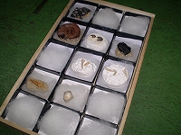 実際に化石を発掘したものを標本にしたり、クリーニング体験や、レプリカつくりなどで作った作品も標本にしてまとめたところ。