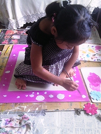 これほど集中して絵をかくとは思ってませんでした。また、水彩絵の具をプラバンに塗るとき、丁寧に塗らないとはじいてしまうらしく、時間をかけて塗ってました。