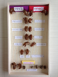 抜け殻でセミの種類を見分ける方法がわかり、その点について他の人にも分かるように標本で提示できたこと