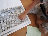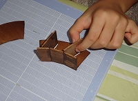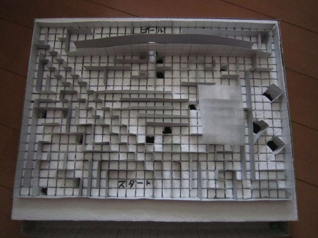 落とし穴をあけるところや、ボンドをつかったりするところ、壁を差し込んだりするところなど、かなり細かい作業でしたがあきらめず最後までよく頑張りました。