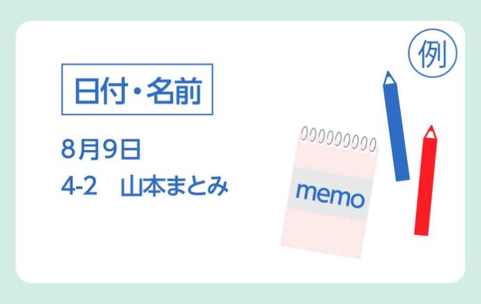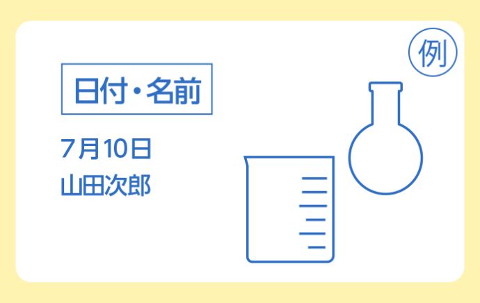 自由研究をまとめた日付・自分の名前を書いておきます。まとめ方に合わせてどこに書いてもいいですが、タイトル近くがわかりやすくておすすめです。