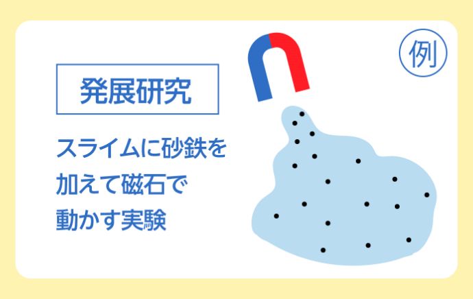 テーマからは外れるけれど、「スライムに砂鉄を混ぜたらどうなるか調べてみた」などの実験もしたのであれば、発展研究として簡単に紹介します。