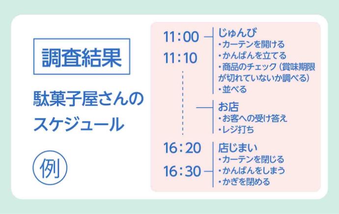調べ学習の自由研究は、調査結果がたくさんあってまとめ方がむずかしいことも。タイムスケジュールや表にして、大事なポイントが伝わるように工夫しましょう。大きな絵を中心にしても良いですね。