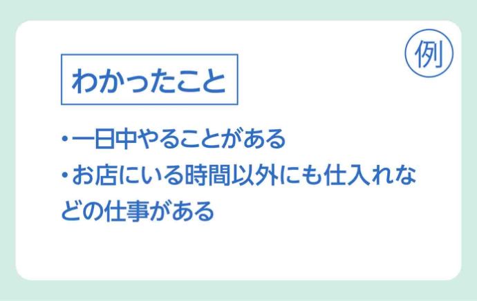 「わかったこと」を短い言葉でまとめます。調査前の予想と比べて、「思っていた通りだった」「意外なことを知った」など自分の感想も入れても良いでしょう。
