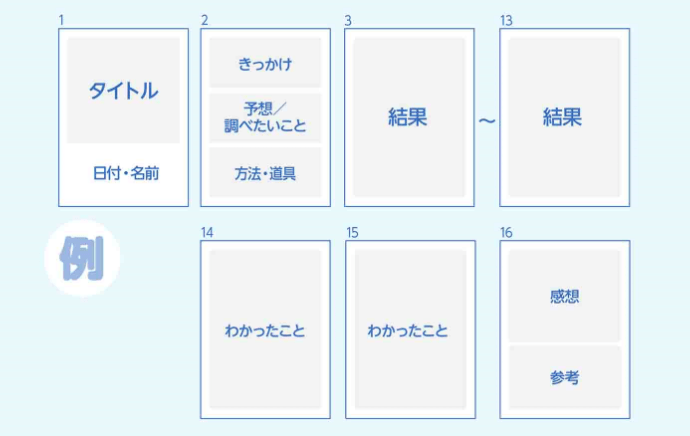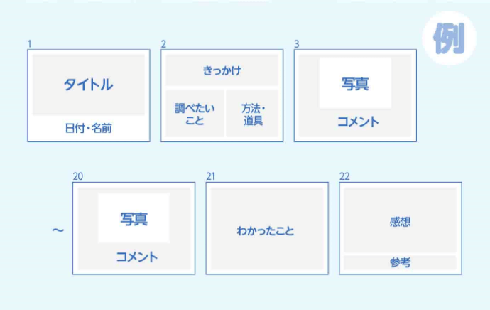 おすすめの自由研究:実験・観察など。街の看板探しなど、写真をたくさん並べるときにも使いやすい。
