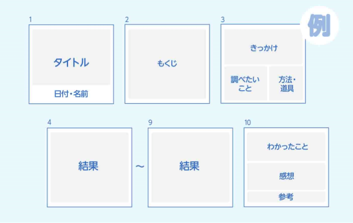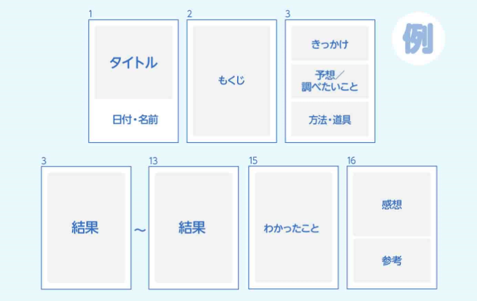 ノート、スケッチブック、画用紙など、自由研究に使えるまとめ用紙と、構成の例も紹介するので参考にしてみてくださいね。