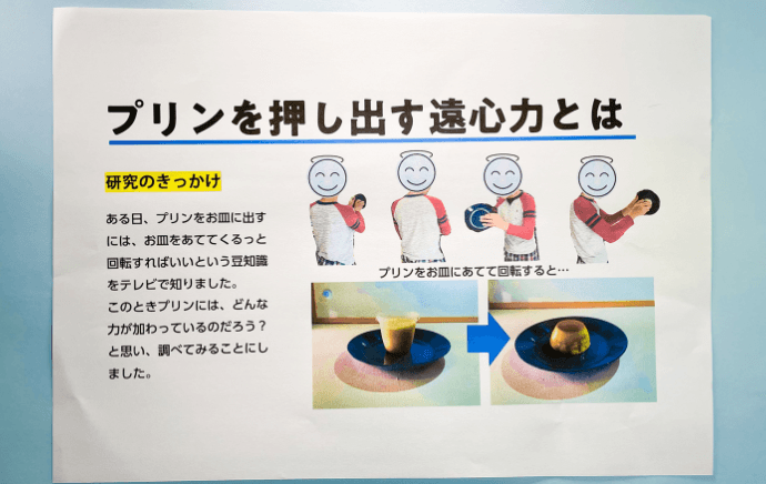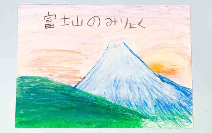 画用紙に絵で表現し、説明は裏に書いていく紙芝居タイプの自由研究。例えば富士山について調べたことを1枚ずつ絵に描き、発表の際には裏に書かれたコメントを読み上げます。