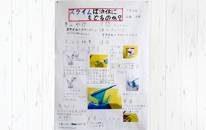 コツ:自由研究の裏側は色柄の紙にして雰囲気を出す。