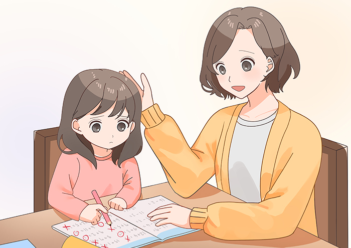 たとえ問題の答えを間違えていても、勉強時間が10分に満たなくても、まずは机に向かえたことをしっかりほめてあげましょう。