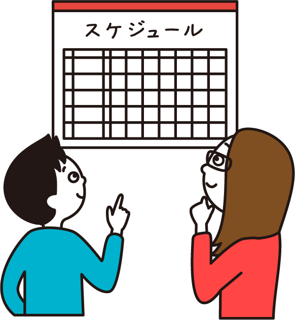 スケジュールは家族の目にとまる場所に張っておきましょう。「できているかな?」と一緒に確認し、できていたら「やったね!」と評価して。計画通りできていないときはハードルを下げてもOK。ネガティブに捉えず、よりよい方法を探すチャンスだと考えて。計画通りにできたらシールを貼るなどお楽しみを用意しても。