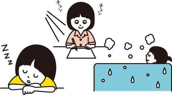 - ・濡れタオルなどでさっぱりする