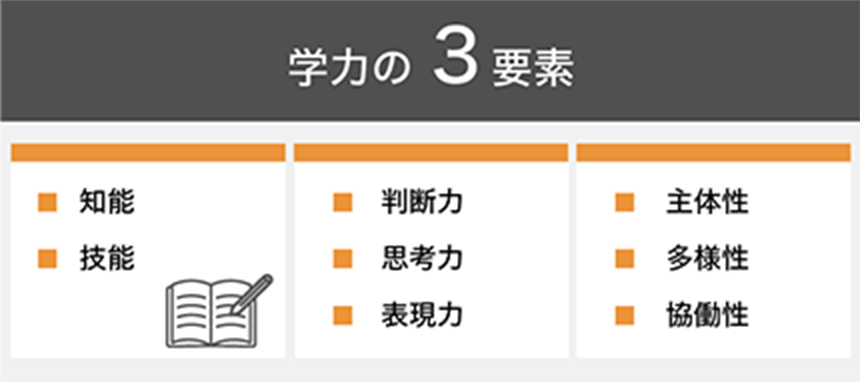 知識・技能、思考力・判断力・表現力に加えて、主体性・多様性・協働性も評価します。