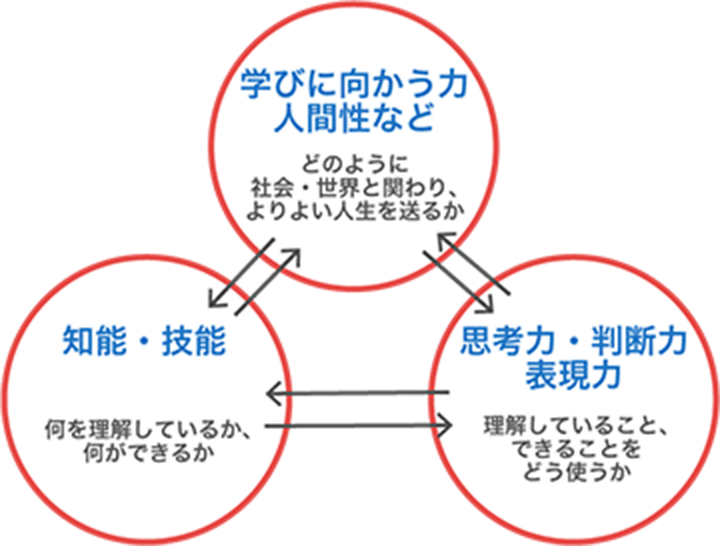 「学びに向かう力」「知識・技能」「思考力・判断力・表現力」という3つの資質・能力の育成が目指されます。