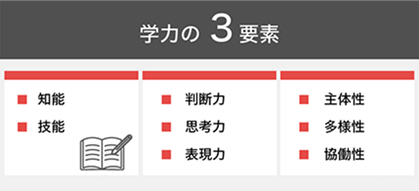 知識・技能、思考力・判断力・表現力に加えて、主体性・多様性・協働性も評価します。