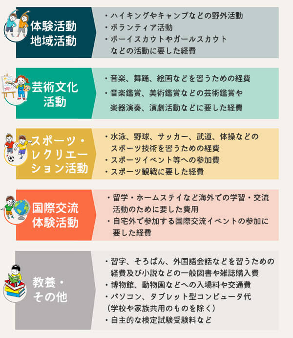 「見えない教育費は、主に以下の5つの項目に分けられます。