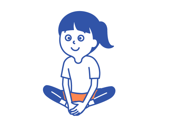足裏を合わせて両手でつかみ、そのまま後ろに転がる。背骨を丸めて転がった勢いでまたもとに戻す。真後ろに転がることができるようになったら、ななめ後ろ左右にも。