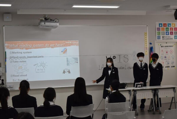 アクティブな探究学習や英語教育を実施していることで知られ、1年生の時から、数学や社会、美術といった他教科の授業を英語で行うことも。狙いは、試験の点数向上にとどまらない「現実社会での実践」にあると言います。