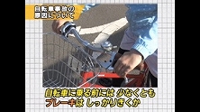 事故の多くは交差点で止まらずなかったり、タイヤやブレーキなどの整備不良など。自転車に乗る前に整備点検をし、交通ルールを守れば防ぐことができます。
