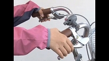 左手が後ろの、右手が前のブレーキ。信号や交差点が近付いてきたら、すぐに止まれるように減速を。止まる時は道路の左端に止まるのが原則。