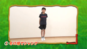 リズム感を身に付けましょう。なわを使わずジャンプして、空中でももを1回たたきます。ジャンプするときのリズム感は、なわとびに最も必要なポイントです。とぶ時は体をリラックスさせて、同じ場所で真っすぐ上にとべるようにしましょう。