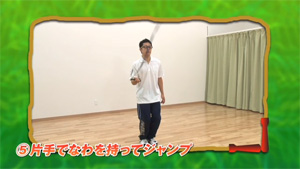 片手でなわを持ってジャンプ