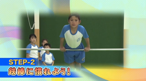 基本練習が終わったら、今度は実際に鉄棒に触れてみて、 鉄棒に慣れることから始めましょう。